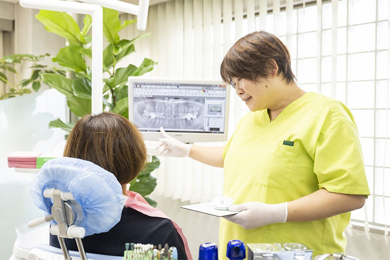 患者さまが不安なく治療を受けられるよう、分かりやすいご説明を心がけます。ご本人にお口の現状や治療内容を理解していただくことは、予防意識の向上にもつながると考えています。